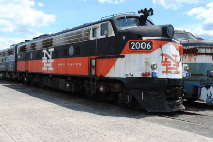 New York, New Haven and Hartford FL9 2006, ex. Connecticut Department of Transportation 2006, exx. Metro North 512 (assigned, not used), exxx. Penn Central 5026, nee New Haven 2026 built by Electro-Motive Division in 1955. It was leased from Connecticut Department of Transportation and arrived in 2001.