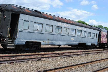 Danbury Railway Museum coach 2001, ex. Housatonic 2001, exx. Connecticut Department of Transportation 2001, exxx. South East Pennsylvania Transportation Authority 2001, exxxx. Reading Company 2001 (02-1948 Conversion to Class PBt Reclining Chair Car), nee Reading Company 1350 built by Harlan and Hollingsowrth in 1922. It was donated by Connecticut Department of Transportation and arrived in 1995.