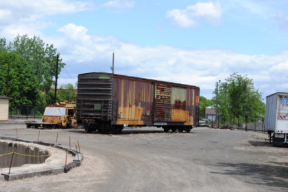 New York, New Haven and Hartford box car 34537, ex. Amtrak, exx. Penn Central, nee New Haven 34537 built by Pullman-Standard in 1948. It was purchased from a scrapper in New London and arrived in 2001.