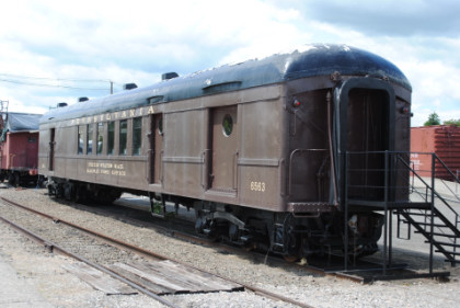 Pennsylvania Railroad baggage/Railway Post Office car 6563, ex. Housatonic, exx. Penn Central, exxx. Pennsylvania Railroad 6563, exxxx. Pennsylvania Railroad 5463 (rebuilt November 1937 into class BM70m), nee Pennsylvania Railroad 6507 built by the railroad in 1910. It was donated by the Housatonic Railroad in 2005.