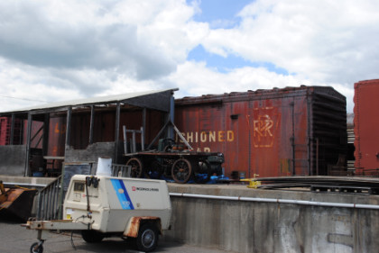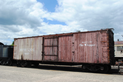 Rutland Rutland wooden box car 8085, ex. Green Mountain Railroad 8085, nee Rutland 8085 built by Youngstown Car Company in 1924. It was donated by Green Mountain Railroad and arrived in 2000.