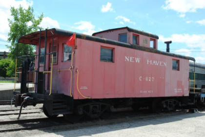 New York, New Haven and Hartford caboose C-627, ex. Berkshire Scenic Railroad, exx. Conrail, exx Penn Central, nee New Haven C-627 built by Pullman-Standard in 1944. It was acquired from the Berkshire Scenic Railway in 1996.
