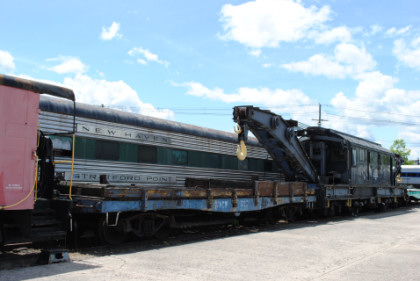 New York, New Haven and Hartford sleeping car 525 "Stratford Point", exx Long Island Railroad 2067, nee New York, New Haven and Hartford 525 built by Pullman-Standard in 1949. It was one of 27 "Point" series sleepers and was configured with 14 roomettes and four double bedrooms. At the vestibule end was a berth for the porter and a general lavatory for the roomette passengers to use when their beds were lowered over the individual facilities. It was later used by the Long Island Railroad in the 1970's in their Parlor Car service. While the ownership changed hands three times, all roomettes and two double bedrooms were removed, greatly altering the original interior of the car. After sitting in a siding in New Milford the car was vandalized before being transported to the museum in 1998.