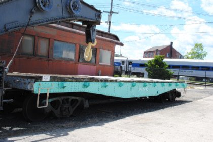 Metro-North flat car 011, nee New York Central 498099 built by the railroad. It is leased from Metro-North and arrived in 1998, accompanying wrecker GCT-1.