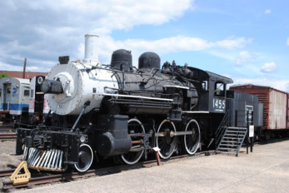 Boston & Maine 2-6-0 1455, ex. Cape Cod 1455, exx. Edaville 1455, exxx. Edaville 100, exxxx. Boston & Maine 1455, nee Boston & Maine 100 built by American Locomotive Company in 1907. 1455 was the sole survivor of the B-15 class Moguls, considered the symbol of the light and backwoods branch lines of the Boston and Maine. In 1956, it still ran on commuter trains out of Boston's North Station to Clinton, Massachusetts. Thereafter, it was displayed at the Edaville Railroad in South Carver, Massachusetts and then sat by itself in Hyannis and Rochester, before we acquired it in 2000 from George Bartholomew.