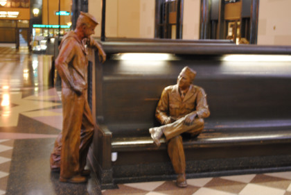 During World War II the station established a USO center with letter writing facilities, a dormitory and shower/bath facilities. During the 1950's and 1960's, increased air travel and the completion of major interstate highway networks significantly reduced passenger traffic on the nation’s commercial rail system. Amtrak, the Federal Government’s response to consolidating and maintaining a semblance of passenger rail traffic, resulted in the demise of private commercial passenger trains. The last passenger train departed Union Station in 1971 and the station closed its doors.