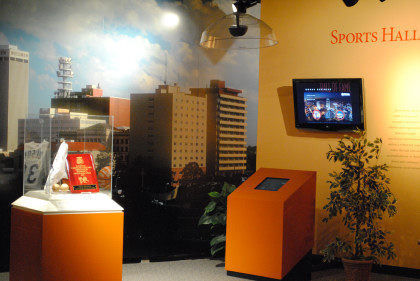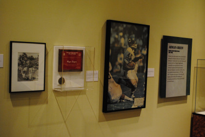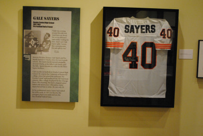 Display about Gale Sayers, the Chicago Bears' all-time rusher.