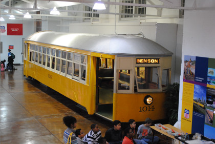 Omaha and Council Bluffs Street Railway streetcar 1014 as seen from above.