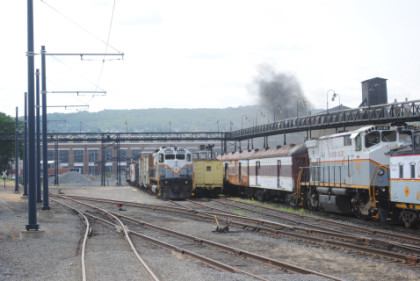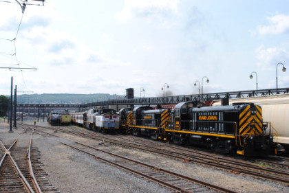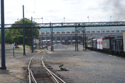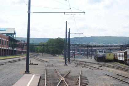 The station is in the middle of the Delaware-Lackawanna Railroad yard.