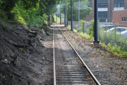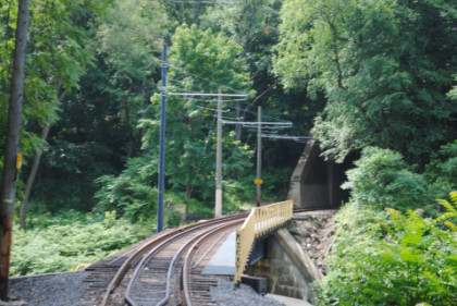 The train about to enter the 4,747 foot long Laurel Line Crown Avenue tunnel.