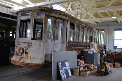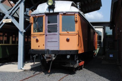 Southeastern Pennsylvania Transportation Authority freight motor 401 built by J.G. Brill Company in 1903, ex. Buckingham Valley Trolley Association in New Hope 401 1990 to 1999, exx. Southeastern Pennsylvania Transportation Authority 401 1970 to 1990, exxx. Philadelphia Suburban Transportation 401 1948 to 1970, Philadelphia and Western 401 1930 to 1948, nee Philadelphia & Western 1 1907 to 1930. This car was also acquired in 1999.