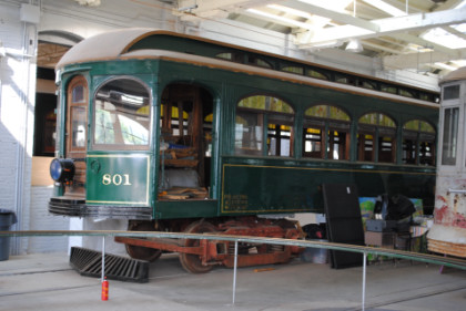Lehigh Valley Transit interurban "Liberty Bell" car 801 built by Jewett Car Company in 1912, ex. East Penn Valley Traction (Topton) 801 1980 to 1999, exx. Liberty Bell Jewett Society 801 1973 to 1980, exxx. Magee Trolley Museum (Bloomsburg) 801 1967 to 1973, nee Lehigh Valley Transit (Allentown) 801 1912 to 1939.