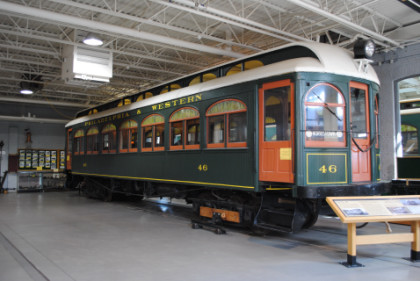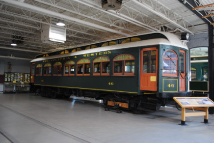 Philadelphia & Western interurban coach 46 built by St. Louis Car Company in 1907, ex. Buckingham Valley Trolley Association 46 1976 to 1999, exx. Southeastern Pennsylvania Transportation Authority 46 1970 to 1976, exxx. Philadelphia Suburban Transportation 46 1948 to 1970, exxxx. Phildelphia and Western 446 1929 to 1948, nee Philadelphia & Western 46 1907 to 1929.