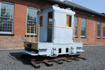 MacAndrews and Forbes Company 10 built by General Electric in 1925, ex. Buckingham Valley Trolley Association in New Hope 1975 to 1999, ex. Trolley Valhalla (Tansboro, New Jersey) 1965-1975. The MacAndrews and Forbes Company was a licorice manufacturer in Camden, New Jersey which operated an internal industrial railway electrified at 250 volts direct current. Little four-wheeled locomotives like 10 worked at moving and distributing supplies and finished materials within the plant compound and 10 survives today as an example of how electric railway technology was applied to industrial applications.