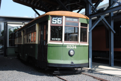 PPhiladelphia Transportation Company streetcar 8534 built by J.G. Brill Company in 1926, ex. Buckingham Valley Trolley Association in New Hope 8534 1975 to 1999, exx. Trolley Valhalla (Tansboro, New Jersey), 8534 1958 to 1975, exx. Philadelphia Transportation Company 8534 1940 to 1958, nee Philadelphia Rapid Transit 8434 1926 to 1940. Between 1978 to 1980, and again from 1993 to 2004, it was on loan to the Southeastern Pennsylvania Transportation Authority.