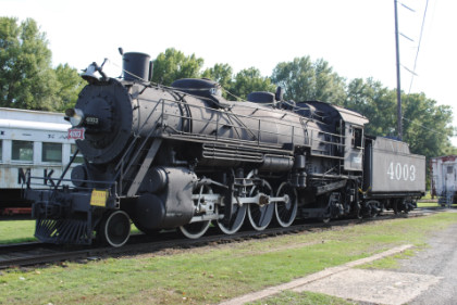St. Louis-San Francisco 2-8-2 4003 built by American Locomtive Company in 1919 for the Pennsylvania Railroad but they rejected it and the United States Railway Administration assigned it to the St. Louis-San Francisco Railroad. 4003 was retired in early 1952. The Frisco kept the locomotive until 1954 when it was donated to the City of Fort Smith and placed on display in Kay Rodgers Park. It remained there for almost fifty years until in 2002, the city transferred ownership to the Fort Smith Trolley Museum.