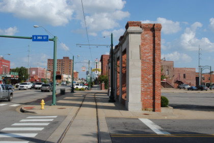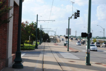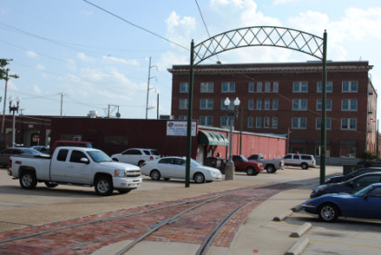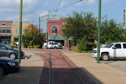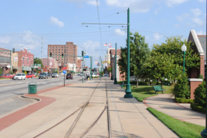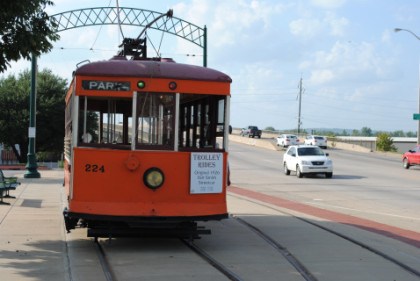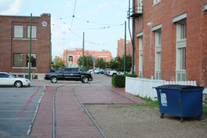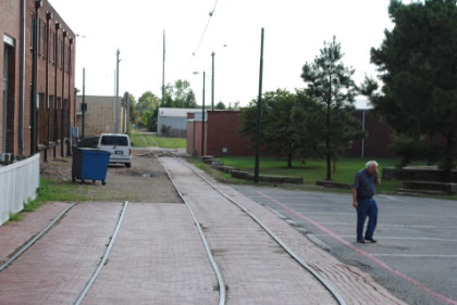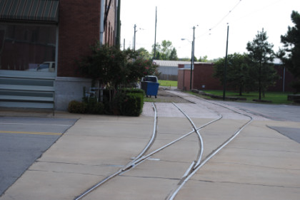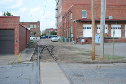The look behind the car from where we started shows the portion of the Fort Smith Trolley Line that we would not be riding this late afternoon.