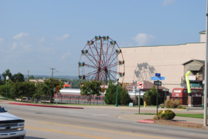 Across US Highway 64 is a Ferris wheel and a diner.