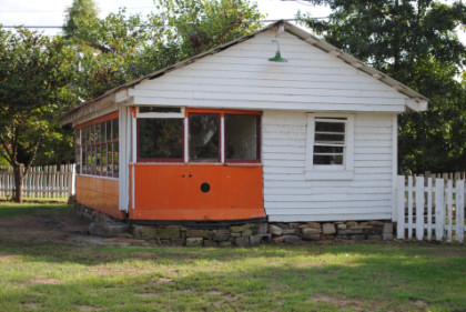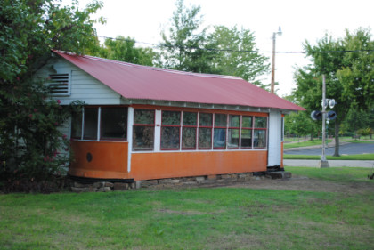 The trolley house, which is Fort Smith Light and Traction Birney Safety Car 21 built by American Car Company in 1926.