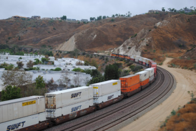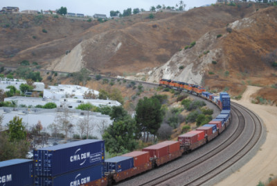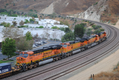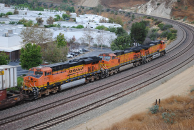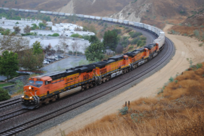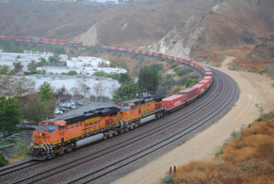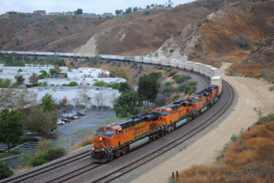 BNSF 7565 East on a piggyback train. I called Chris Parker to make sure the train departed Los Angeles on time.