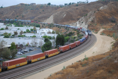 BNSF 5231 West on a stack train. I talked to Chris Parker again and learned they had passed through Fullerton and on their way to my location.