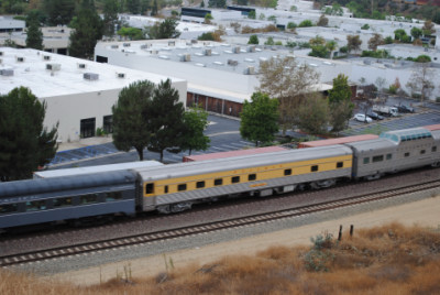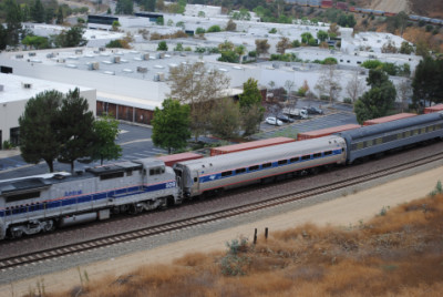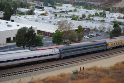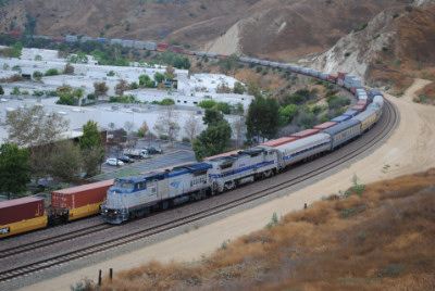 Metrolink 859 was on its way to Oceanside this Saturday. Chris then called back to saying they were passing Hobart Yard and were over an hour late.