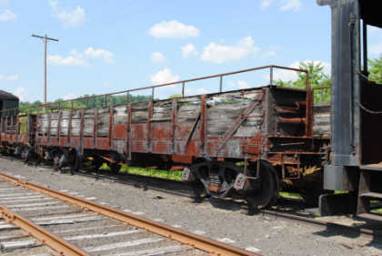Wanamaker, Kempton and Southern gondola 729, nee Lehigh and New England unknown 10201 series car around 1958 and was used as a boom car for LNE crane 698. During 2004 the car was stripped of what remained of the wood planking.