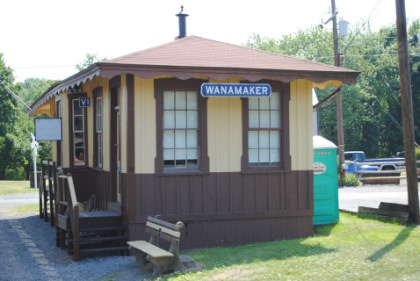 The former Wilmington and Northern Railroad station built in 1888 and was moved from Joanna in 1963 when the Wanamaker, Kempton and Southern started the tourist line.