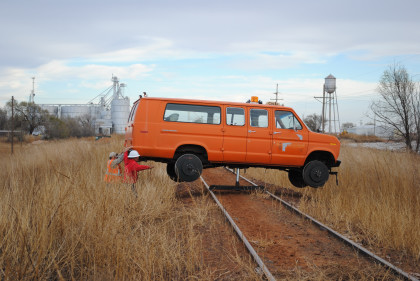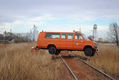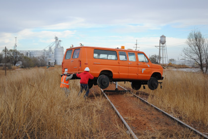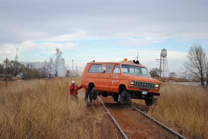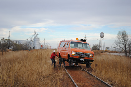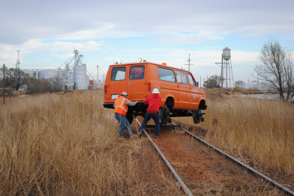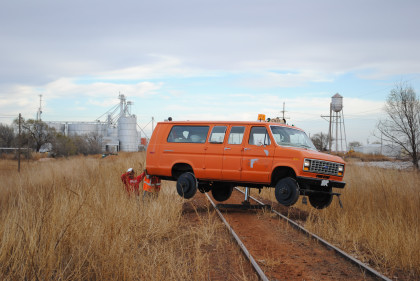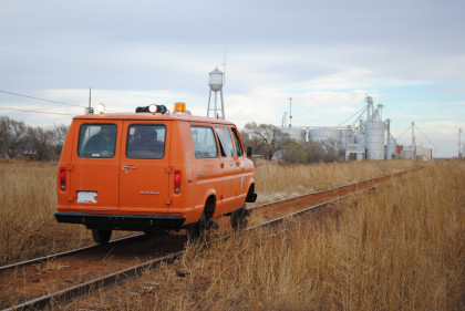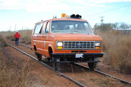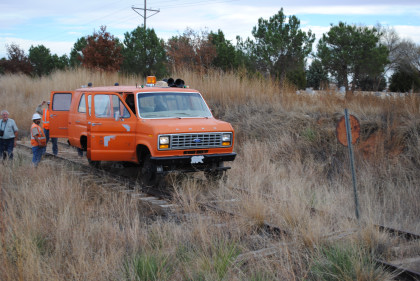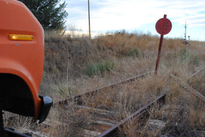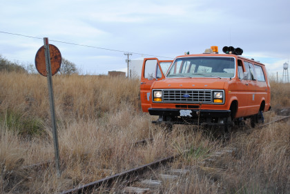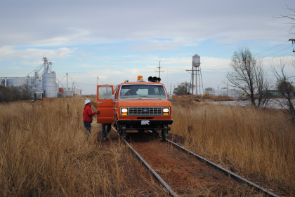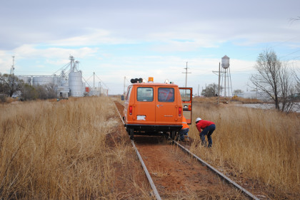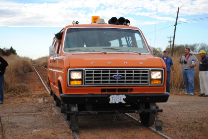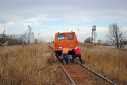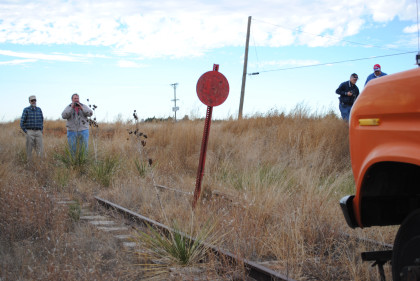 The Moose at the end of the line. We all reboarded to go back to the grade crossing then climbed out before it was reversed to turn it around for the trip back to Levelland.