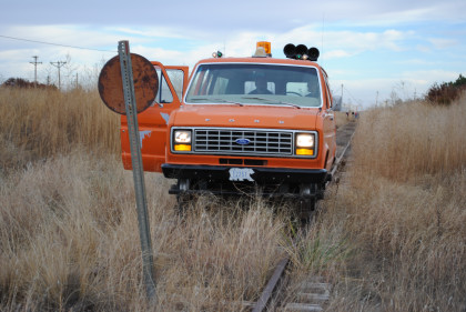 Our Moose was about to round a curve, a rare event on this rail line.