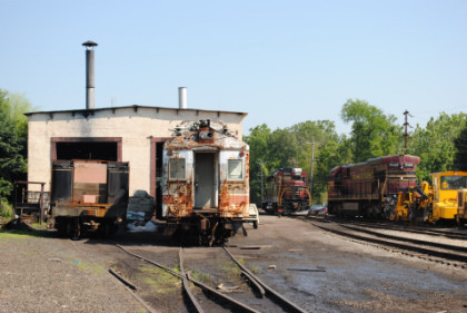 View of New Hope & Ivyland Railroad shop area. Now here are the cars that make up today's train.