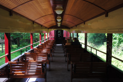 In the summer of 2010, following a few years of serious restoration work, 1525 emerged from the New Hope shop in its current form as the railroad’s only operating open air car. The entirety of the interior was opened, removing the "all-weather" configuration of the 1970's, with new wooden benches, set up in a similar style to the cushioned versions in the coaches, replacing the older style. The restoration also included the addition of an observation deck at one end for added passenger enjoyment.