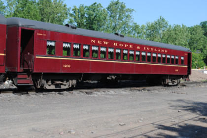 New Hope & Ivyland Railroad coach 1202, ex. Valley Forge Scenic Railroad 1202, nee Reading Railroad 1202 built by Bethlehem Steel Corporation's Harlan & Hollingsworth Division in 1922.