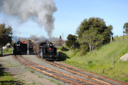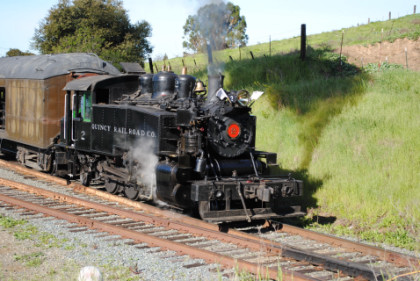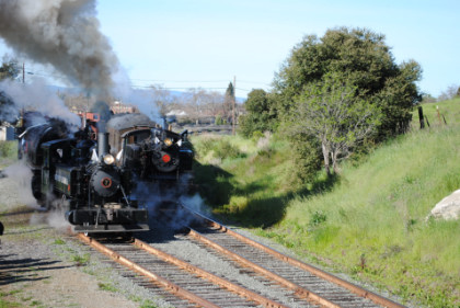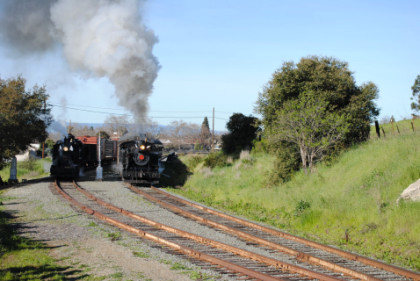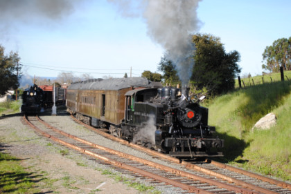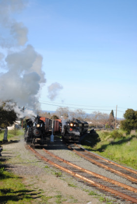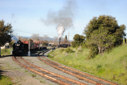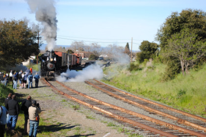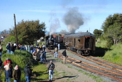 Everyone was moving to their photo location before our passenger train left for Niles so Quincy Railroad Company 2 could run around its train again and then be on the east end for the return trip up Niles Canyon.