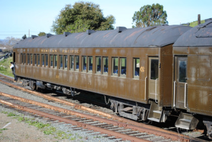 Western Pacific coach 315 built by Pullman in 1923. In 1952 Western Pacific rebuilt the car as maintenance-of-way MW0910, then in 1973, it was purchased by Mr. Norman Holmes of Portola and donated to the Pacific Locomotive Association in August 1974.