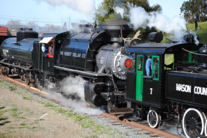 The steam engines for the freight train were Mason County Logging 7 and Robert Dollar Company 3.