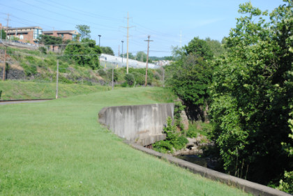 We ran along a creek in a concrete channel.
