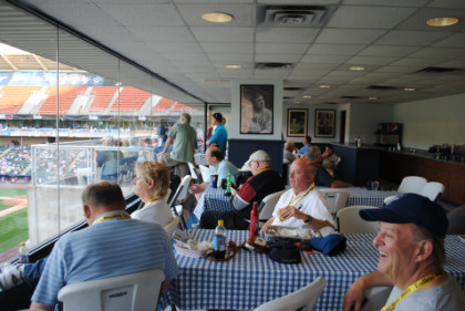 Our group in the Third Base party box.