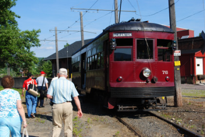 I walked back to Bus 1 and it left within three minutes of me boarding. It was a quicker trip back to Scranton than this morning and I returned to the Radisson Hotel, showered and changed clothes before putting the camera's pictures from today's trip into the computer and uploading them. I then walked towards the Hilton but saw the group already walking over to the trolley for our trip to the ballgame between the Pawtucket Red Sox verses the Scranton/Wilkes Barre Yankees.