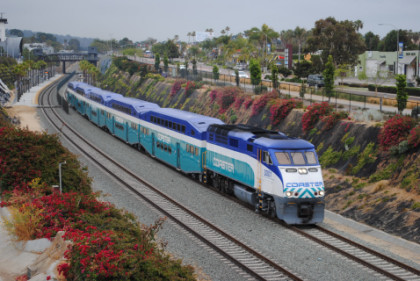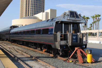 A Coaster train one morning as I fine-tuned my rail mileage at Solana Beach. The morning of my departure, I did my chores early then listened to Let's Talk Trains from yesterday and did my final packing for this trip. My mother drove me to the Santa Ana station and I made my way to Track 1 to start what should be an interesting and fun trip. I had to give the agent my identification to get a luggage cart which I used to get my bags over to Track 1 and he kindly took the cart back to the station.