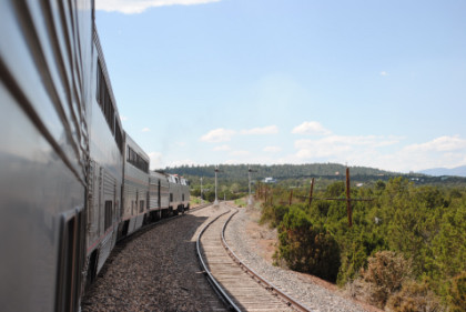 6/14/2010I started my morning awaking just as the train arrived in Winslow then at 6:30 AM, went to the dining car and was seated with two ladies going to Lawrence, Kansas and a gentleman, who also rides trains, going to Chicago for a high school reunion. I had the French Toast and bacon which hit the spot then back in my room, changed clothes and shaved before putting on a DVD to watch as the train made its way towards Gallup.