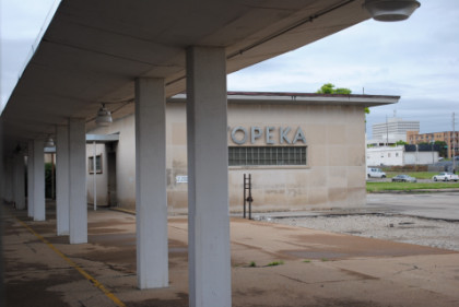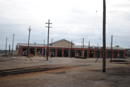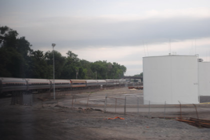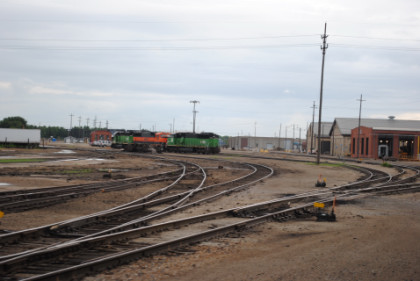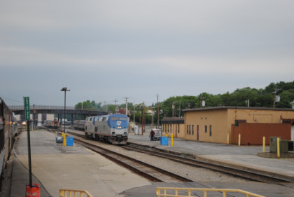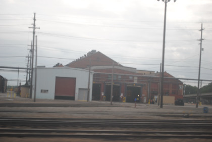 The BNSF shop. I did Sudoku puzzles until Lawrence then napped until after the stop at the BNSF fuel racks. From there we ran into Kansas City Union Station, our first fresh air stop of the morning.