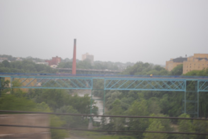 We crossed this river as we approached Rochester station. I had the Angus Beef Burger for lunch with vanilla ice cream to go and watched my DVD of Yes "90125 Live" then took a fresh air break at dry Syracuse during the engine crew change there. We departed at 2:30 PM {10:08 AM} and headed next to Utica, which was more slow running, departing there at 3:57 PM {12:42 PM}. Now a few pictures from here.