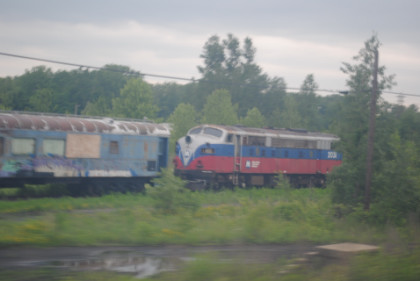 Lake Shore Limited 48 6/15/2010This train consisted of P42DCs 57 and 100, baggage 1703, Amfleet coaches 25006 and 25026, sleeper 62018 "Meadow View", Horizon cafe 53051, coaches 25051, 25018, 25020 and 25109, diner 8505, sleepers 62007 "Colonel View" and 62016 "Lake View" with baggage 1733. I had Room 3 in the "Lake View" with George as my Sleeping Car Attendant. The train departed Chicago twelve minutes late at 9:42 PM and we headed out into the rainy night. I sat in my room until George returned to make up my room and I called it a night. During the night, our train travelled miles at twenty miles an hour due to flooding along the tracks which caused it to be almost three hours late this morning.