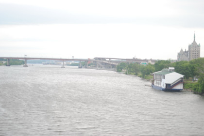 Our train about to cross the Mississippi River Fort Madison bridge and after that, entering Illinois.