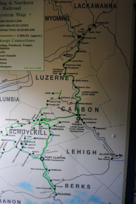 In 1990, opportunity knocked and the railroad purchased one hundred thirty miles of railroad from Conrail, known as the "Reading Cluster". The trackage was comprised of former Reading Company track to the heart of the anthracite coalfields in Schuylkill County. As Conrail continued their program of spinning off rail lines that did not fit into its core network, the Reading Blue Mountain & Northern expanded again. In August 1996, RBMN acquired a portion of Conrail's Lehigh Division. Comprised of over one hundred miles of former Lehigh Valley Railroad trackage, the rail line stretches from the southern foot of the Pocono Mountains at Lehighton through Wilkes-Barre and Scranton and onward to Wyoming County. RBMN negotiated overhead trackage rights over the Carbon-County owned 18-mile railroad that runs between Hometown and Jim Thorpe in order to connect its two divisions.
