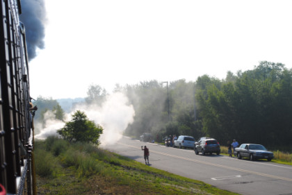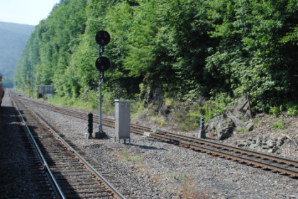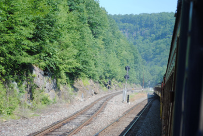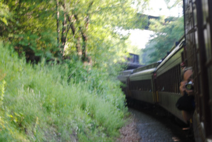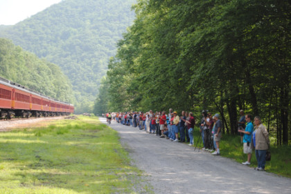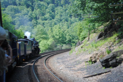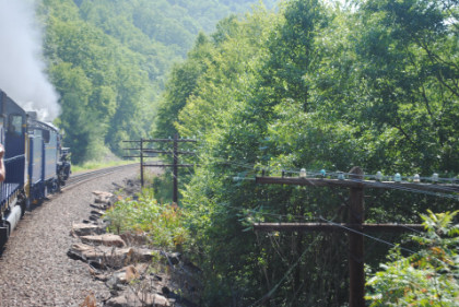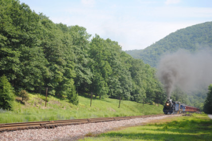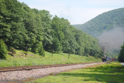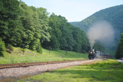 At Independence, the Norfolk Southern line enters the Lehigh Gorge and we stopped for a pair of photo runbys.