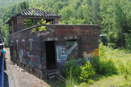 At Nesquehoning Junction was the abandoned Central Railroad of New Jersey PQ Tower as we neared Jim Thorpe.