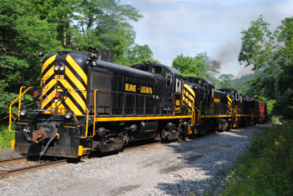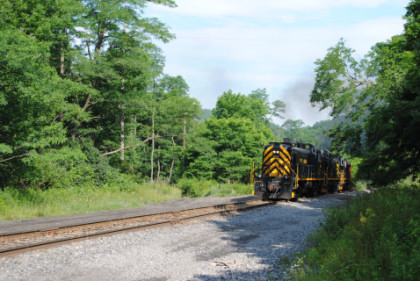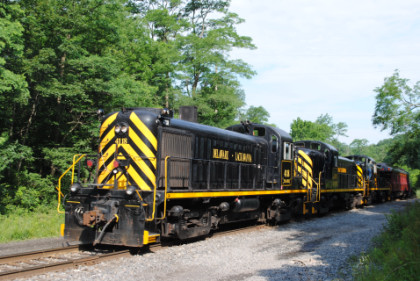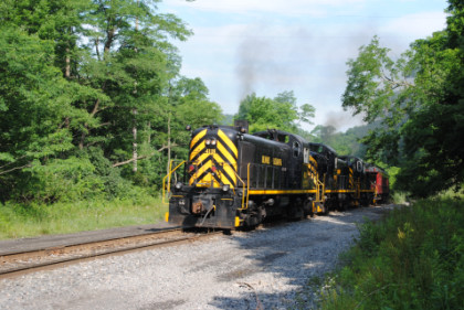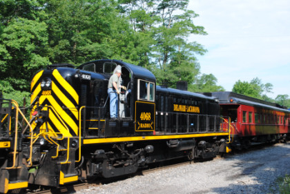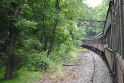 The train rolling down the grade to the Delaware River.