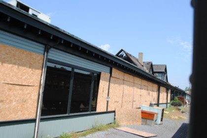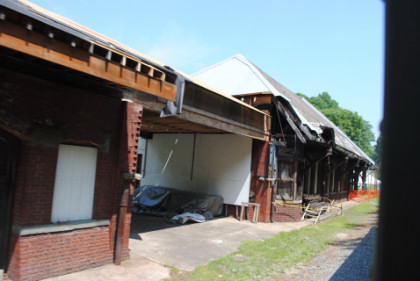 Two views of the fire-damaged Stroudsburg freight station built in 1882.